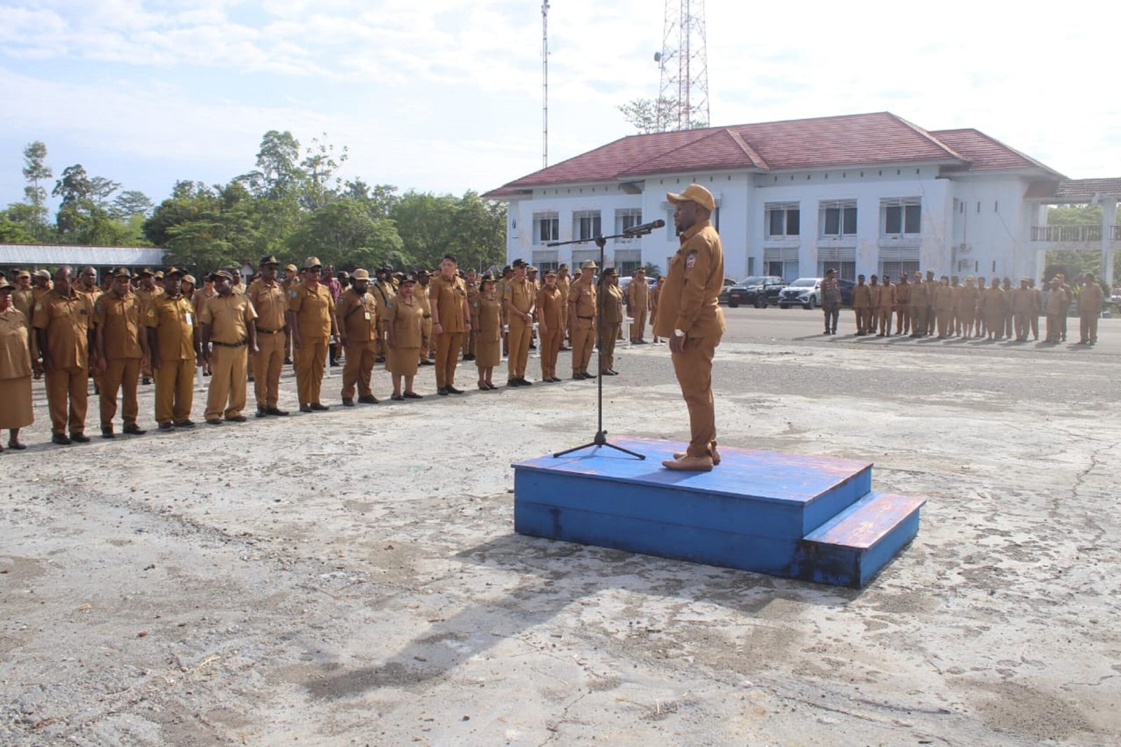 Yahukimo, 12 Januari 2026 Pemerintah Kabupaten Yahukimo melaksanakan apel pagi bersama pada Senin (12/01/2026) di halaman Kantor Bupati Yahukimo. Apel pagi ini diikuti oleh 267 Aparatur Sipil Negara (ASN) dari berbagai Organisasi Perangkat Daerah (OPD).